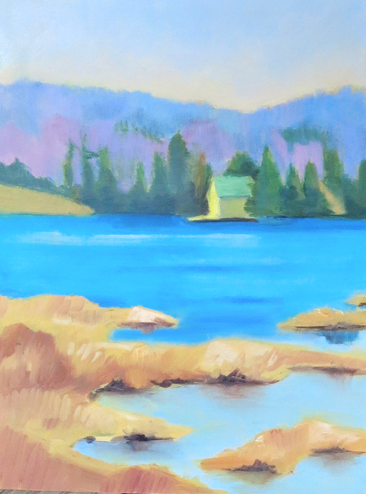 My first plein air painting from a week ago. I removed a few trees and worked to really simplify the painting focusing on design more than the specifics of the scene.