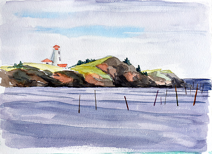 This is another watercolor painted plein air on Grand Manan Island, New Brunswick, Canada. It was painted during the overcast rainy day from the front seat of the car.