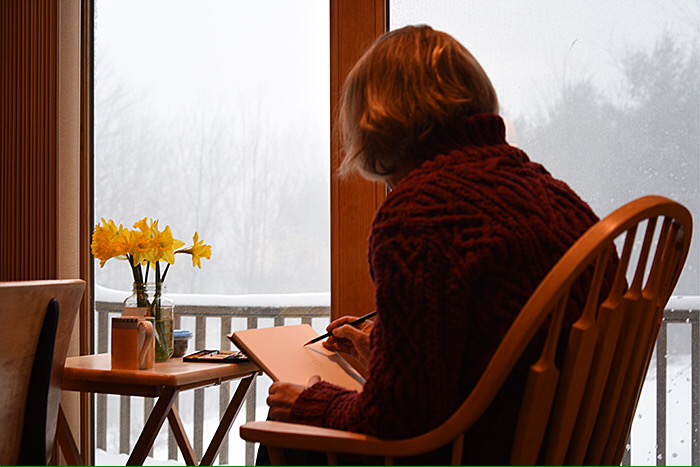 We just had a big snow storm and I was lucky to get some flowers from Trader Joe’s before the snow started.