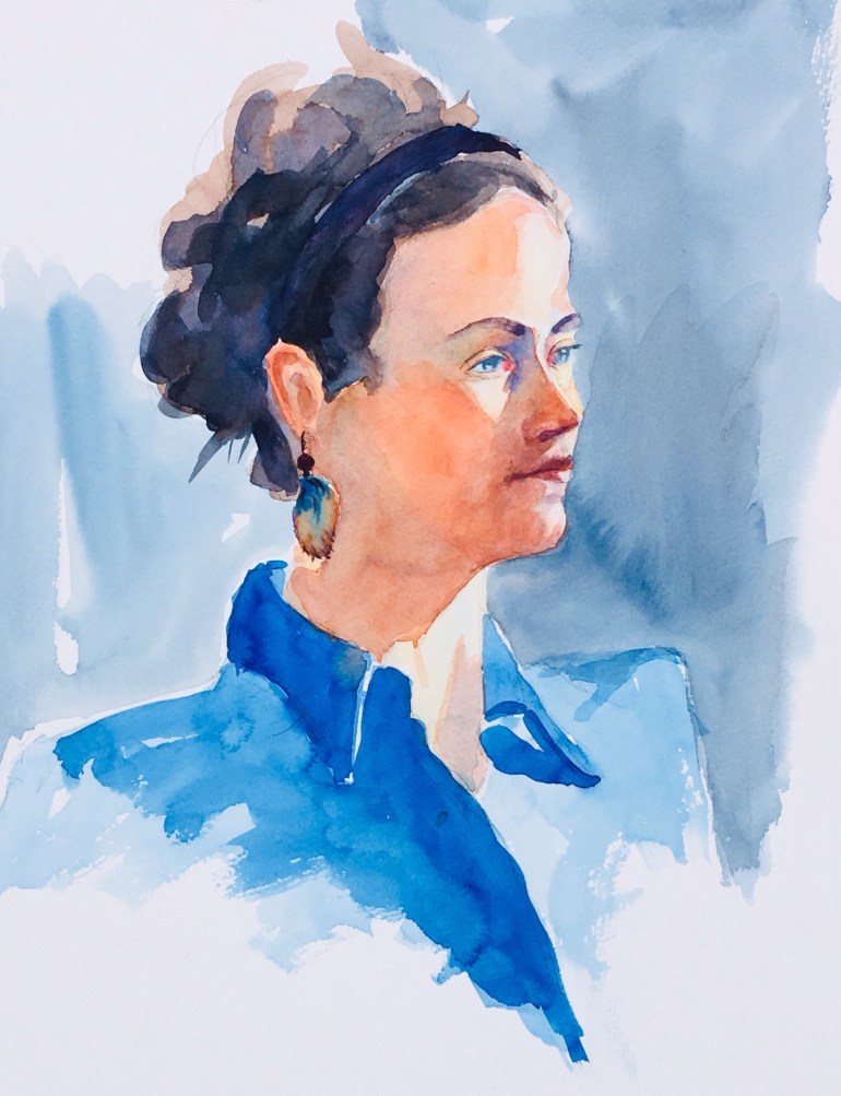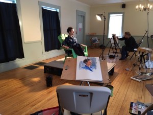 This is a four hour drawing session. The small monochromatic painting was was study on 5×7″ paper. The large painting is about 12×18″ on Fabriano 140 lb. paper