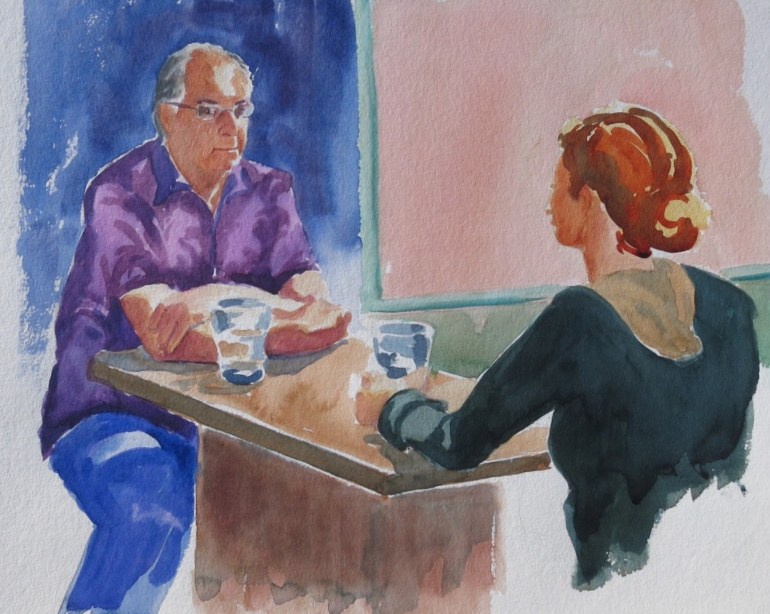 We had this setup today at our drawing group, it was very complex working with two models. This measures about 15×20″