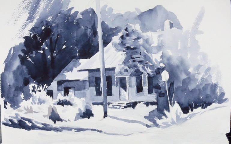 1. Nice drawing, nice value studies. Brown madder not playing well with Ultramarine? Too much grand-ewe-lay-shun? How about some W&N Burnt Sienna with some W&N French Ultramarine? They make for a warm gray and seem to get along fine, he said sheep-less-ly. Your Payne’s Gray looks like a Schmincke Horadam Payne’s Gray Blue, a purer blue than any other brands, really nice.