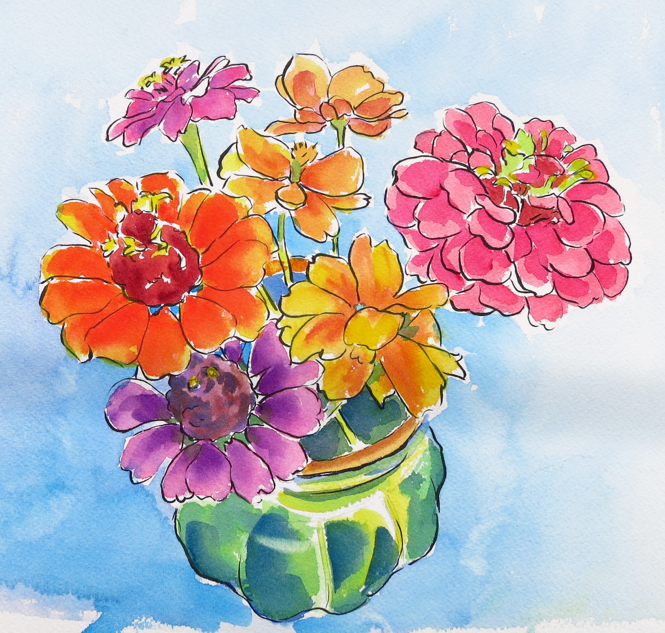 10×10″ watercolor on 140 lb. Arches paper with white mat, all materials are archival. Priority shipping included in price.