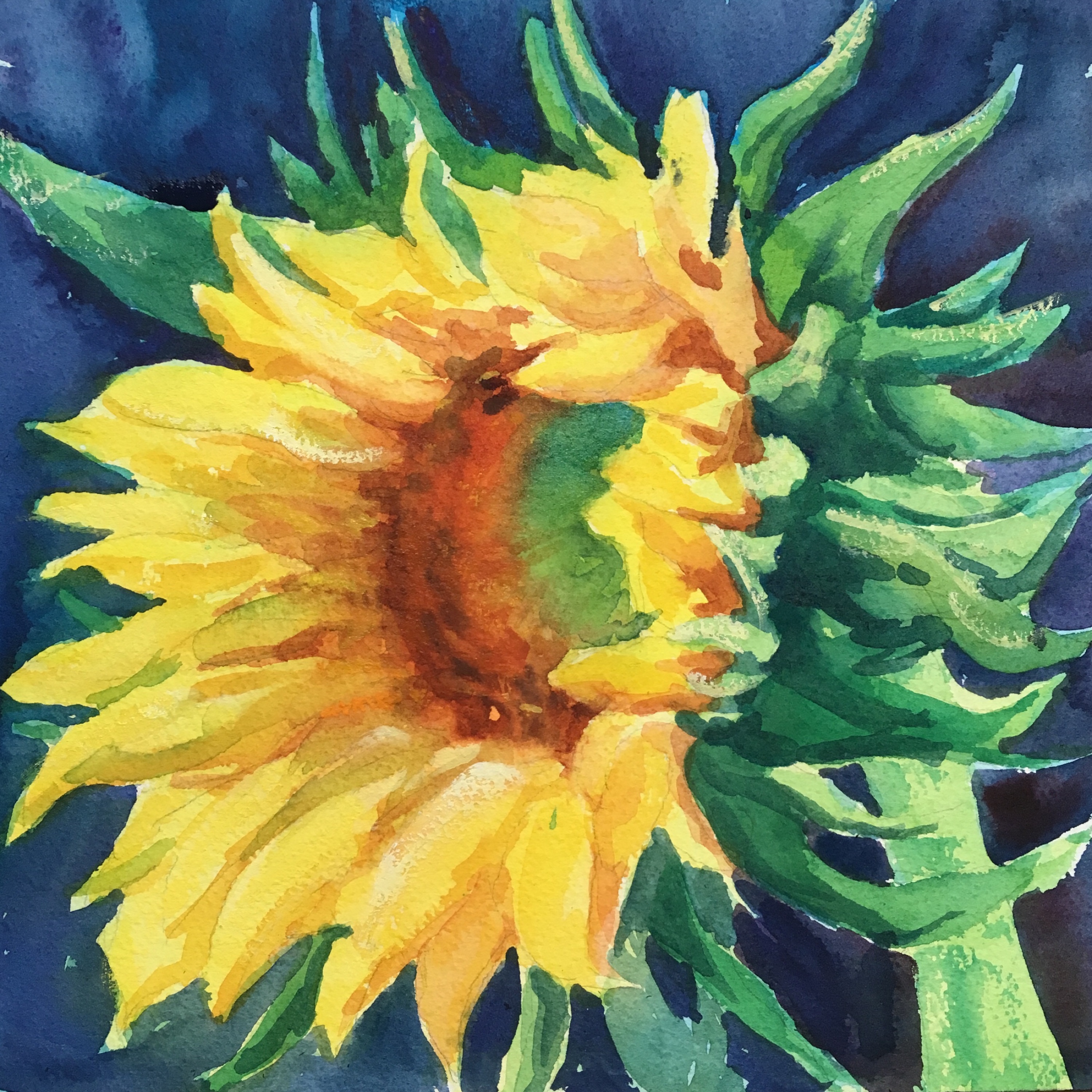 Last of the Sunflowers from my garden. This is 10×10″ on Arches 300 lb. paper.