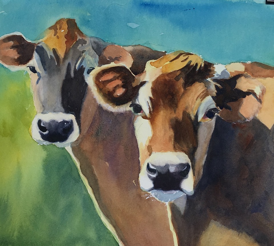 I’ve been using my photos from the Molly Brook Farm for a series of jersey cow paintings.