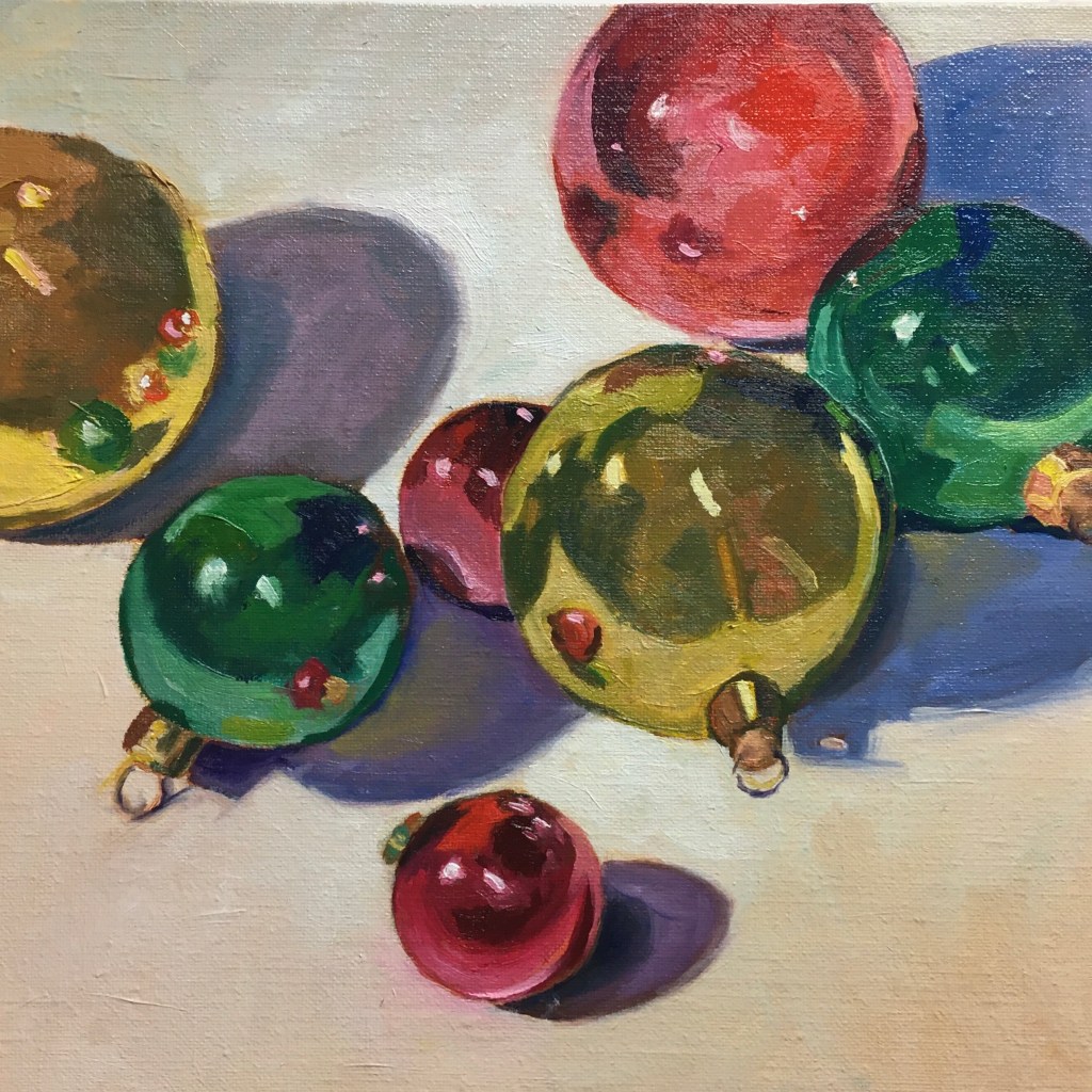 Thanks to Sarah Sedwick (http://sedwickpaints.blogspot.com) for her online still life tutorials. Definitely need to search for more ornaments and paint some more of these!