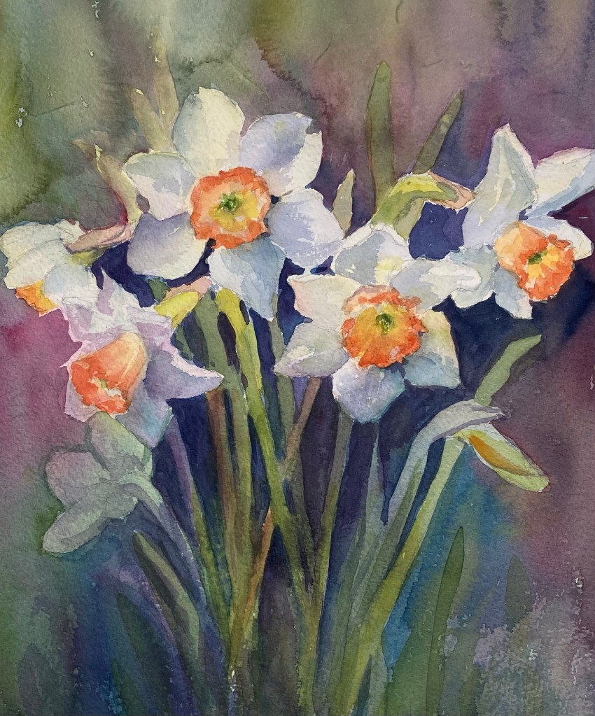 Hopefully this will be the last daffodil painting though I’m continuously drawn to there geometry of shapes. They are also such happy flowers