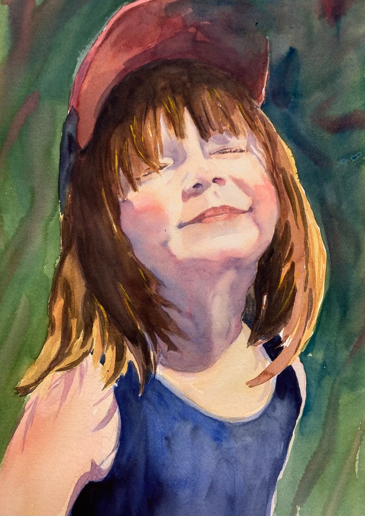This is a larger watercolor than I usually do, measuring 12×18”. I feel most portraits of children are hard to pull off but I’ve had the photo for awhile and wanted to give it a try. If it’s a person you are close to it’s easy to be inspired.