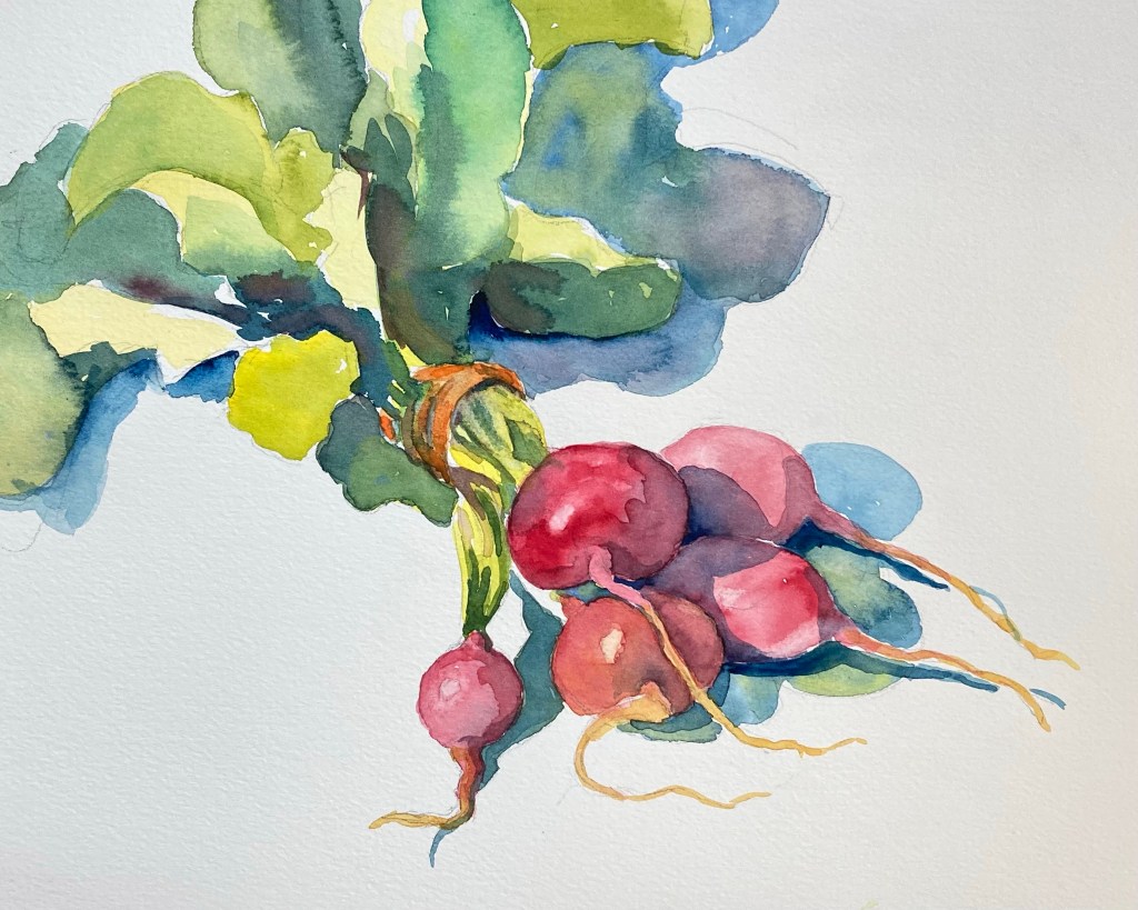 Radishes are more fun to pull out of the garden than to eat. Their ruby red color and full bunches of leafy greens are one joy of home gardening.