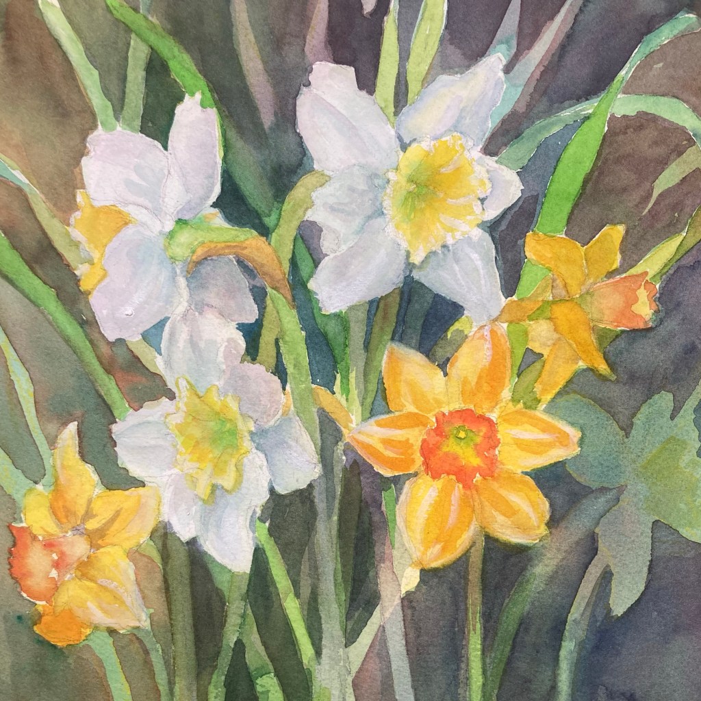 I love the geometry of the daffodil. There is the cylinder, cone, and disc and other non geometric shapes Im practicing negative space painting for my up coming workshop where I’ll be teaching negative space painting techniques